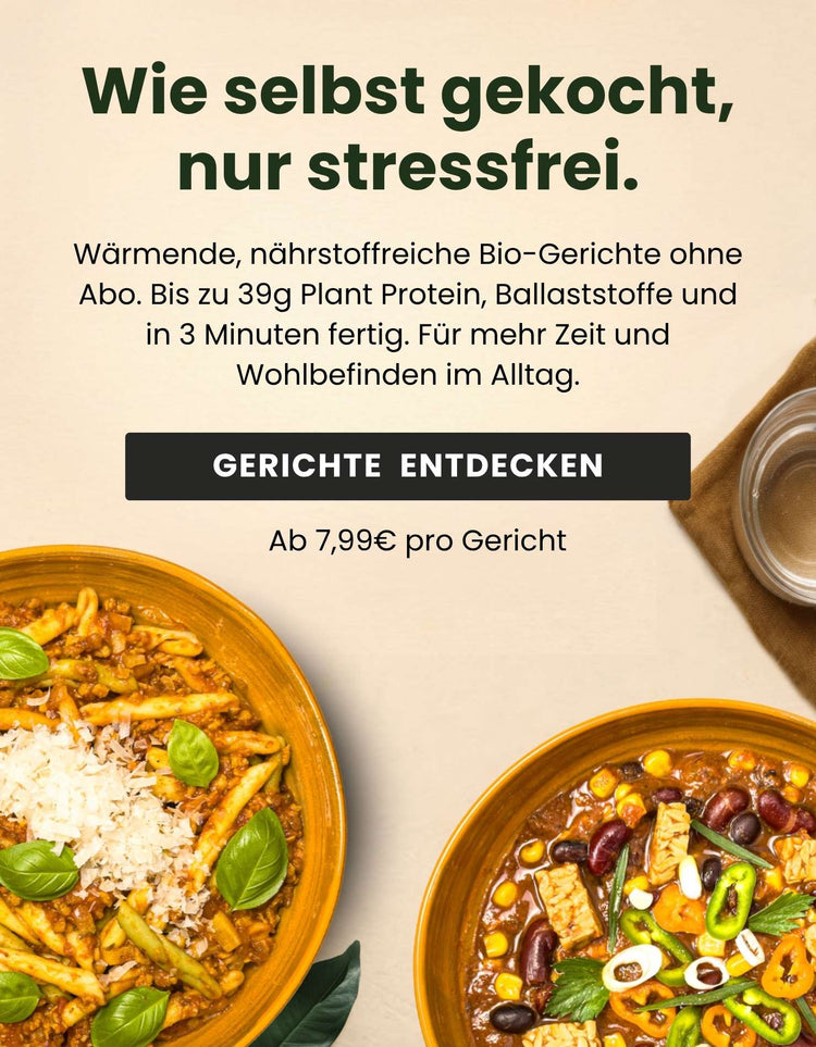 Es ist die Liebe zur Natur, den Tieren und Menschen, warum wir für unsere Goldblätter zu vollwertigen biologischen Zutaten aus der Region greifen. Der Markt ist mit veganem Fleischersatz überschwemmt, der billige Zutaten enthält (Wasser-Pulver-Mischungen) und industriell hergestellt wird sind. Als unser geschätzter Kunde verdienst du eine nahrhafte, qualitativ hochwertige und schmackhafte Ernährung. Deshalb setzen wir auf 100% Bio-Qualität, um uns deutlich von anderen Herstellern abzuheben und dir ein außergewöhnliches Geschmackserlebnis zu bieten. Erst deren natürliche Vielfalt und Intensität ermöglichen Gerüche und Geschmäcker, die Freude bereiten, überraschen. Wir glauben fest daran, dass qualitativ hochwertige Lebensmittel der Schlüssel zu einer gesunden und ausgewogenen Ernährung sind. Bei jeder Produktseite unserer Geniestreiche findest du detaillierte Infos zu den einzelnen Zutaten. Bei uns kannst du Transparenz über die Herkunft und Qualität unserer Produkte erwarten, was uns von anderen Herstellern abhebt.