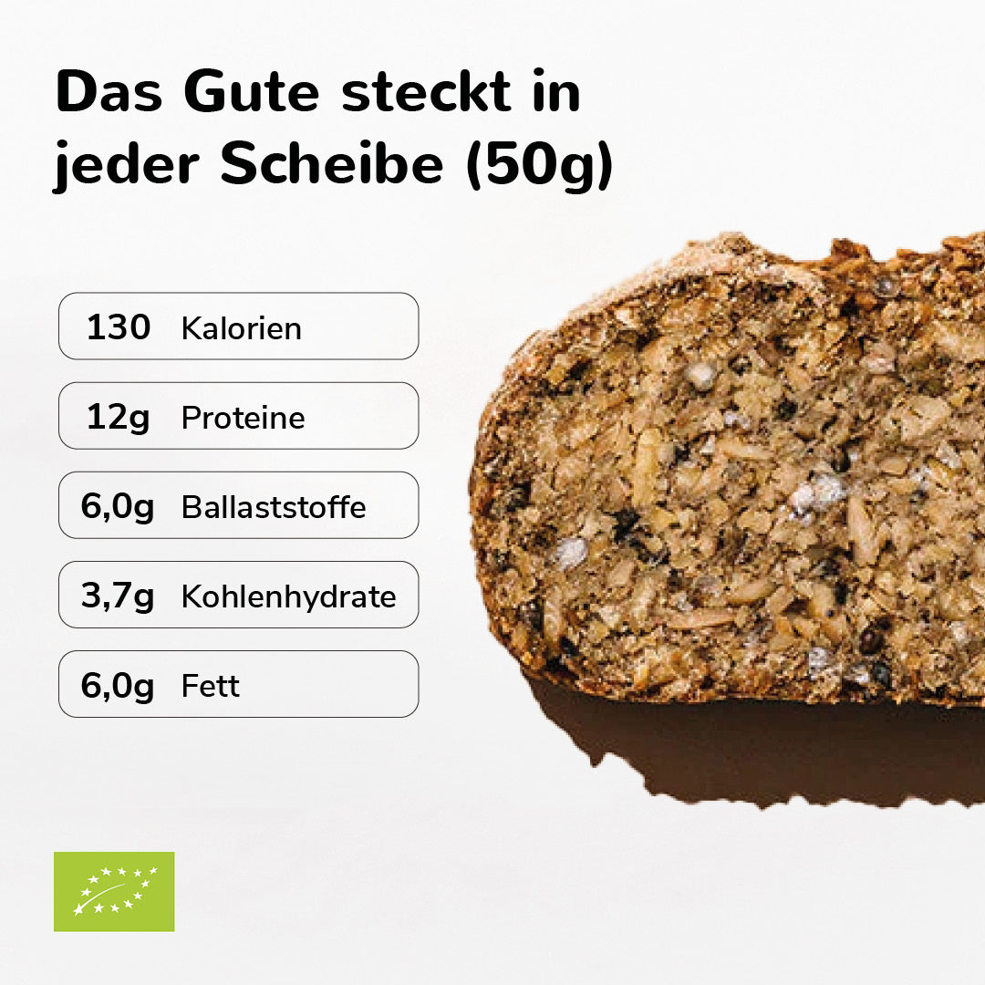 Für alle, die auf eine proteinreiche Ernährung achten: Supreme Bread mit Sojaflocken liefert beeindruckende 148 g Eiweiß pro Laib (600g) und ist dabei reich an Ballaststoffen. Die Mischung aus Sojaflocken, Buchweizen und Goldleinmehl ergibt ein gehaltvolles und wohlschmeckendes Brot. Perfekt für Low-Carb-Fans, Sportler oder einfach für alle, die bewusster genießen wollen.