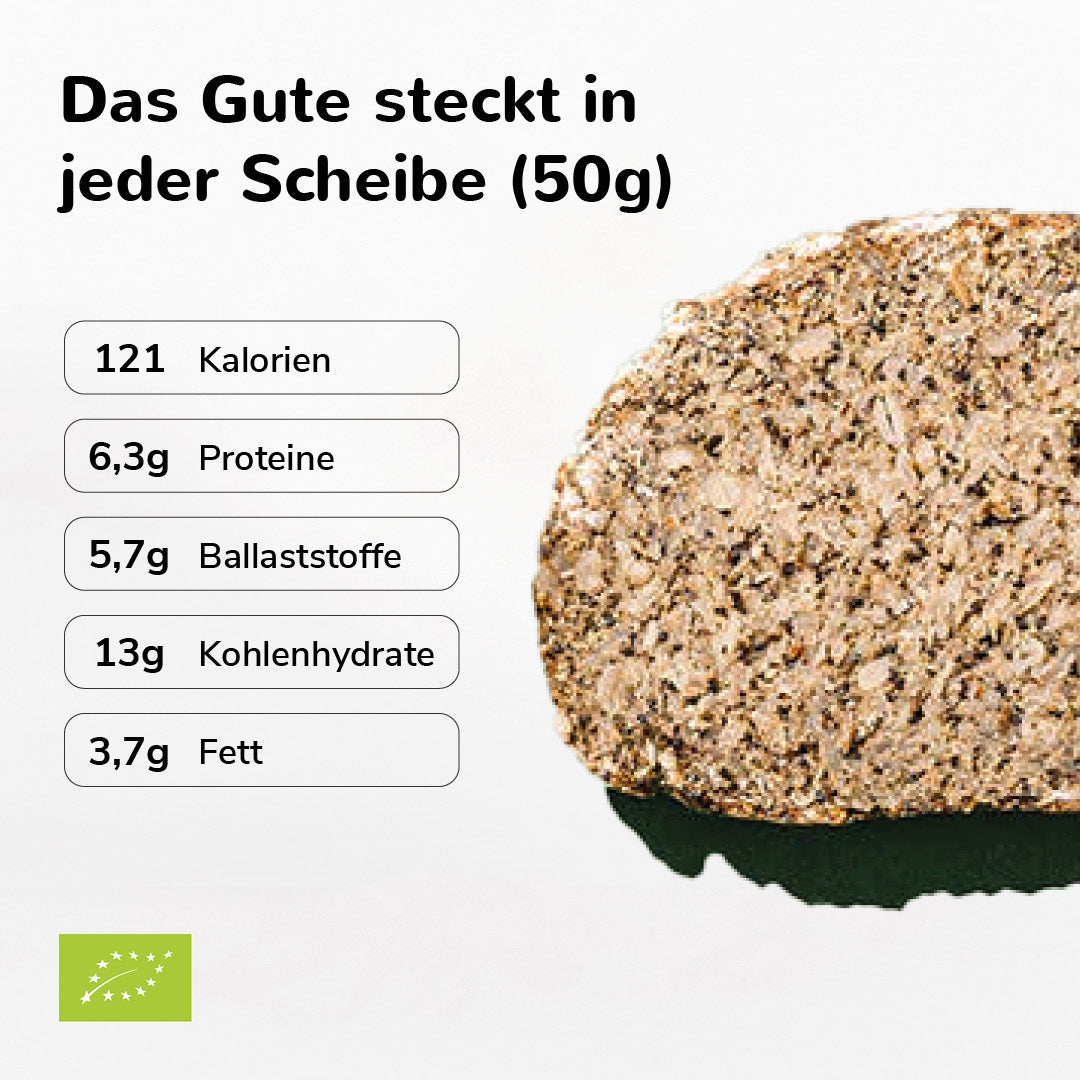 Zutaten: Hafervollkornflocken* glutenfrei, Goldleinmehl*, Sonnenblumenkerne*, braunes Leinmehl*, Blaumohn* 5%, Salz.