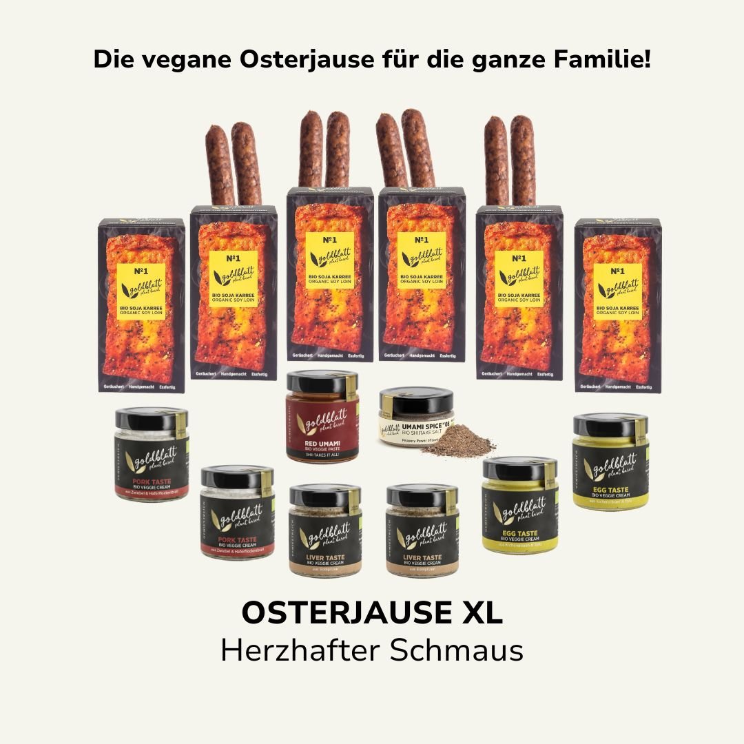 Ostern steht vor der Tür – und mit der Goldblatt Osterjause wird das Festessen zu einem pflanzlichen Genussmoment für die ganze Familie! 🌿🍽️